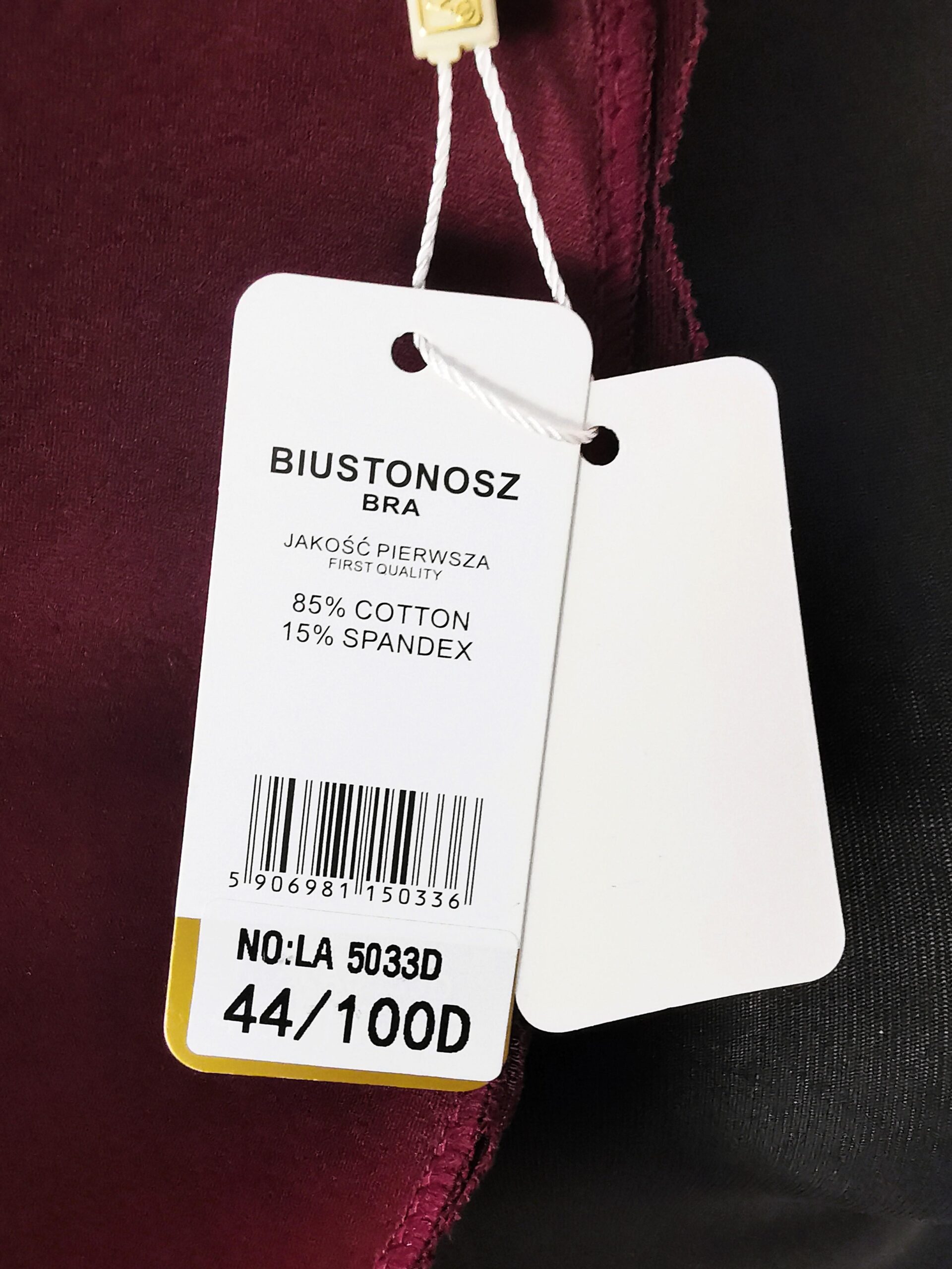 Bordowy biustonosz. Nowy z metką. Obwód pod biustem – około 100 cm.