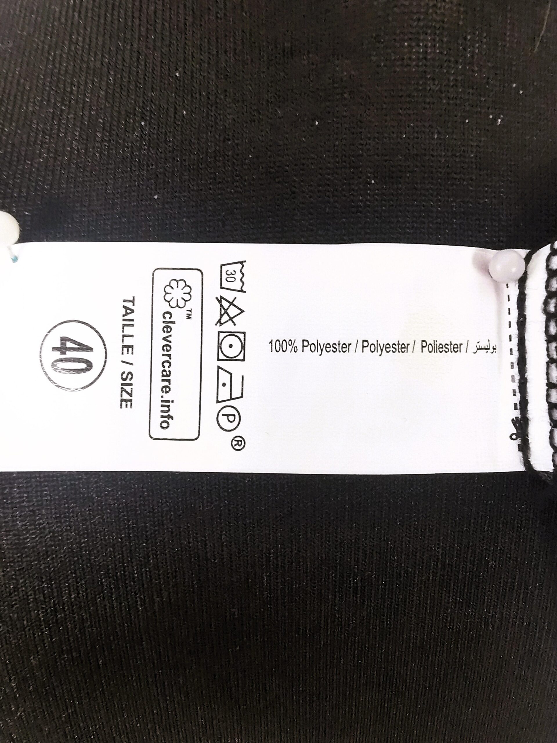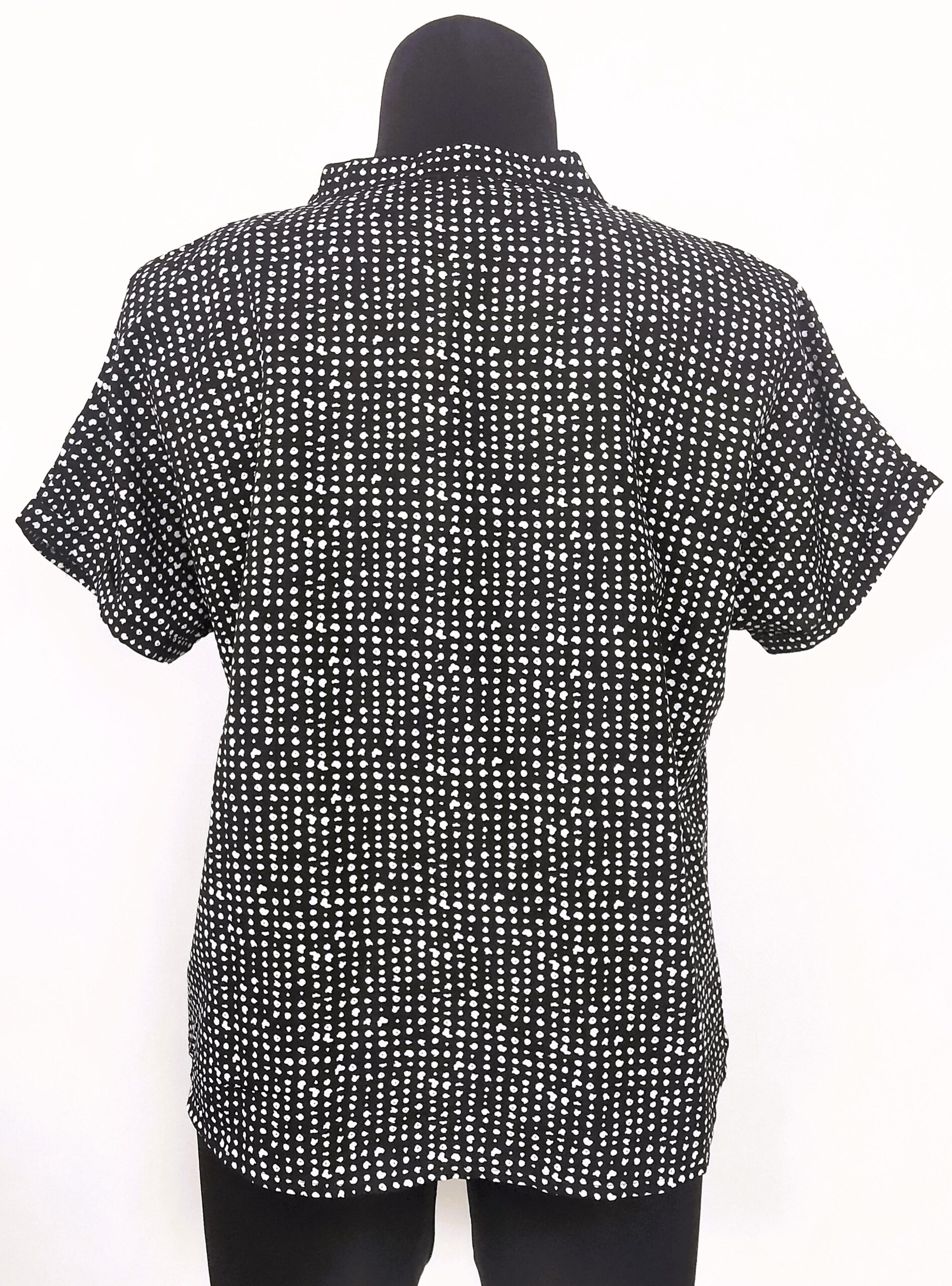 Czarna bluzka w białe kropki wkładana przez głowę.