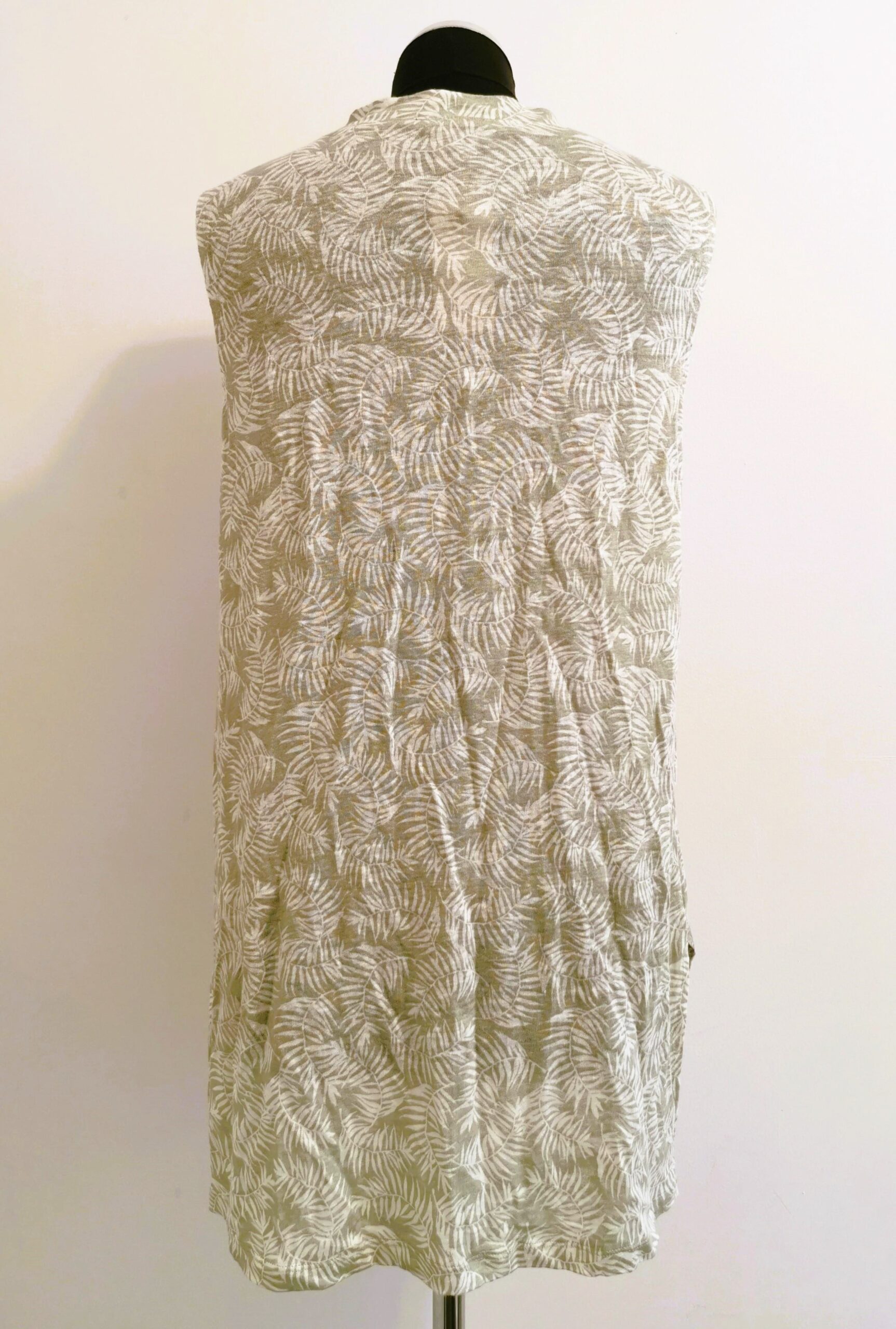 Letnia, zielona bluzka w białe liście.
