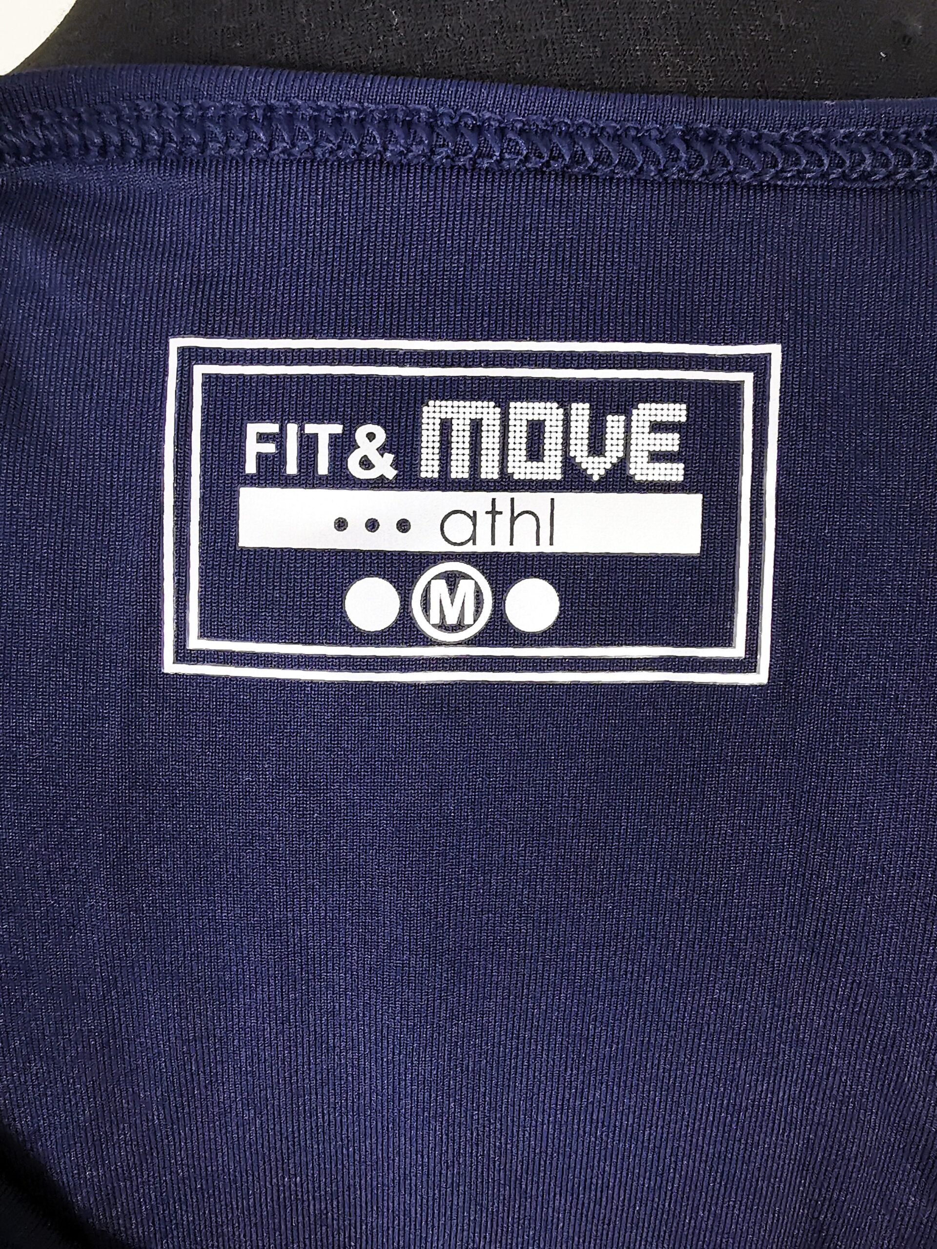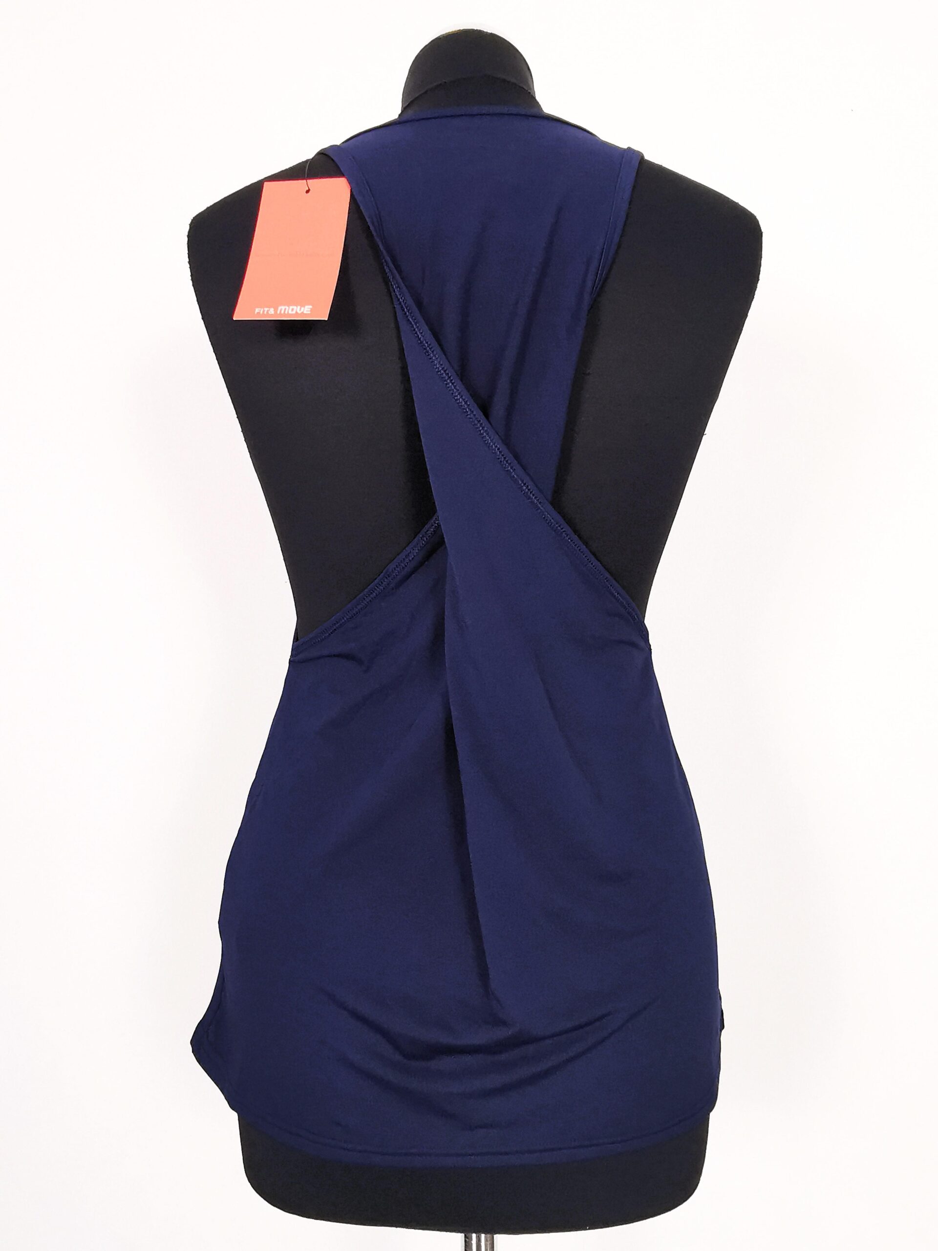 Sportowa koszulka ze złotym napisem na przodzie i ciekawym tyłem.