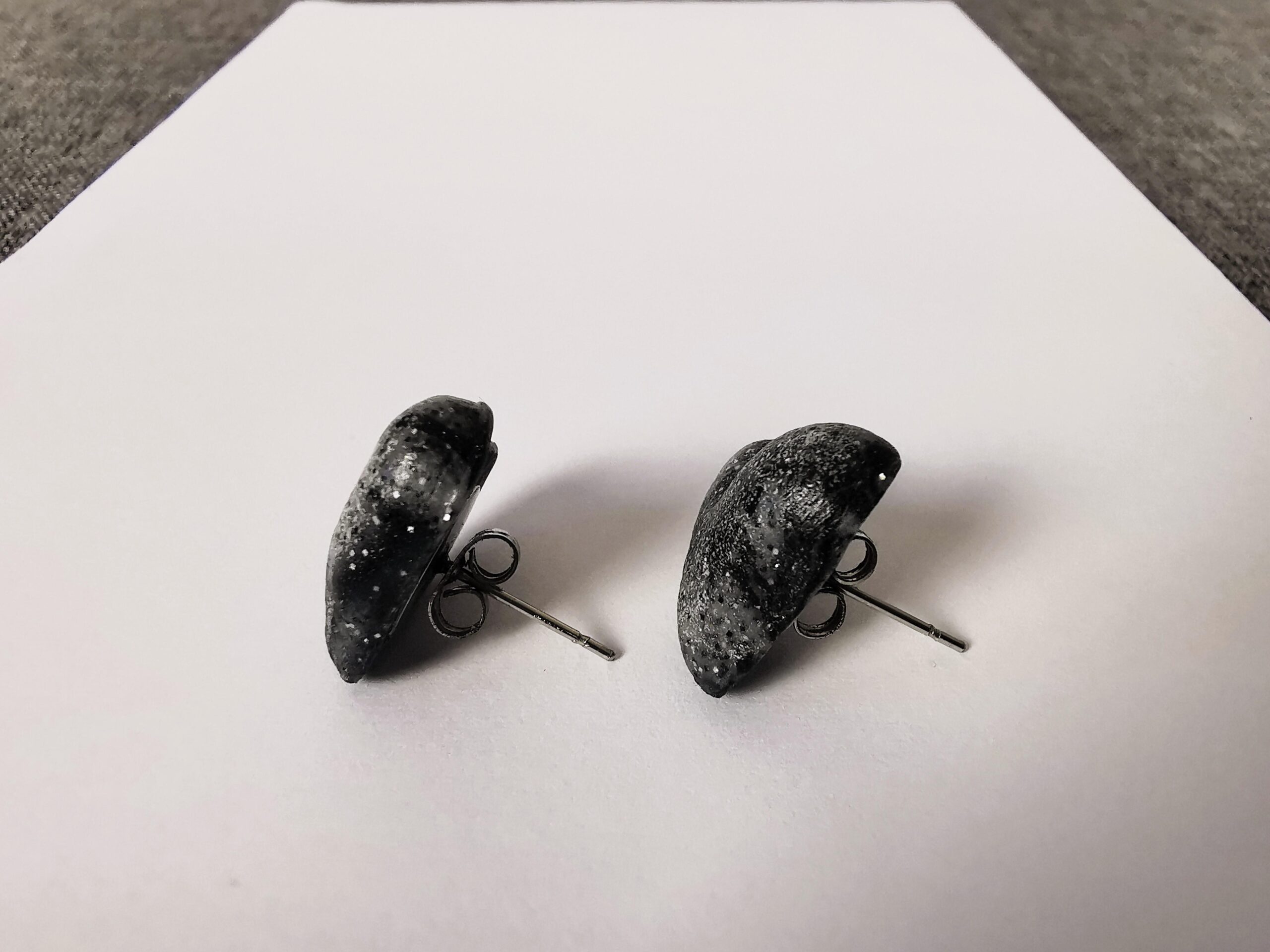 Kolczyki handmade z masy termoutwardzalnej w kolorze ciemnego szarego melanżu.