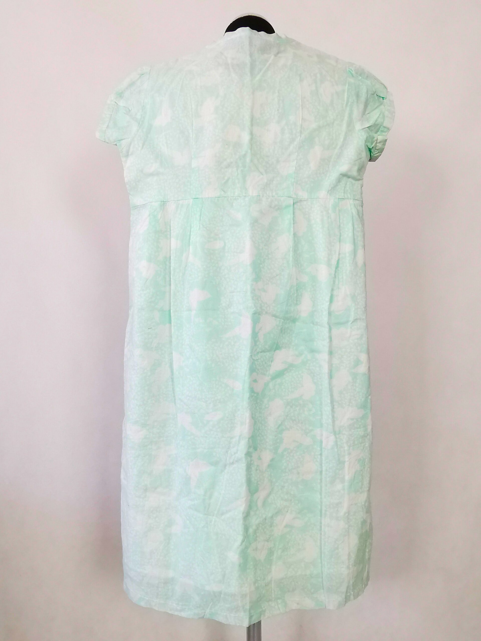 Turkusowo-biała letnia sukienka z podszewką. Z przodu posiada ozdobne guziki.