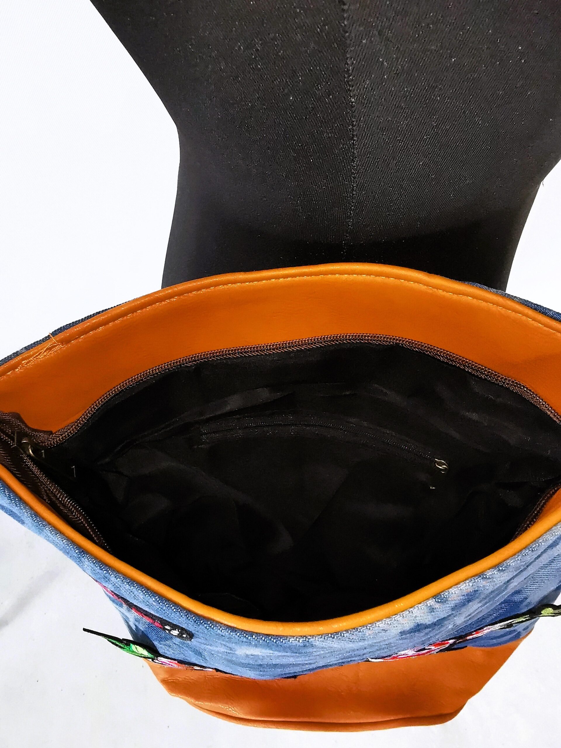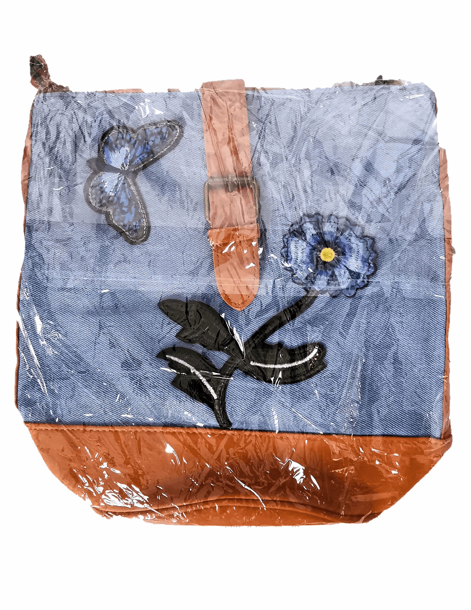 Torebka z aplikacją w niebieskim kolorze, z regulowanym paskiem.